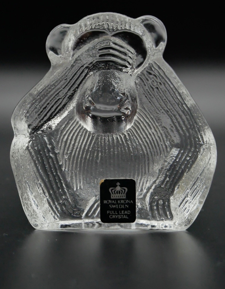 LISA LARSON glass figurine ROYAL KRONA APA "See No Evil"