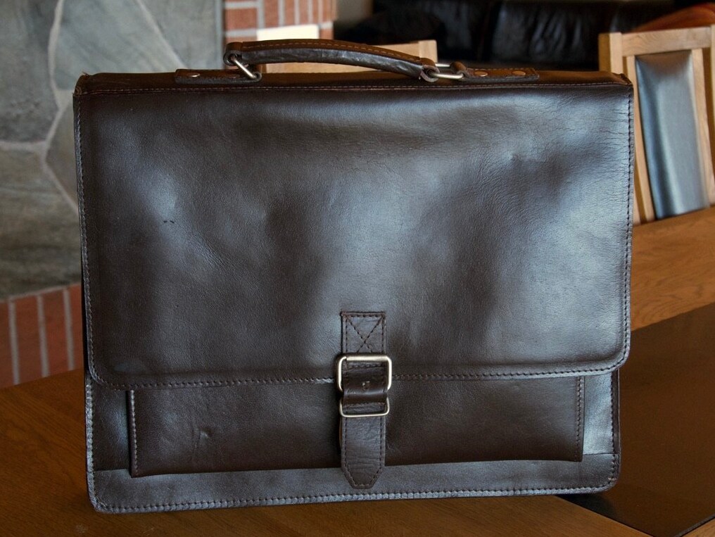 Brown retro leather document bag Shoulder bag Briefcase bag in 100% leather