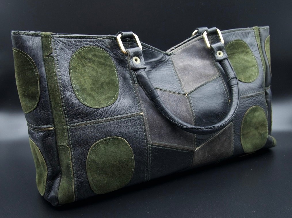 Vintage Retro Chic 100% Leather Bag Patchwork black leather bag tote Bag