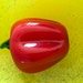 Vibrant and quirky hand-blown art glass sculpture by Gunnel Sahlin for Kosta Boda. This glossy red pepper features rich red and green hues with realistic curves and subtle stem detail — a stylish and playful collectible from one of Sweden’s best-known glassmakers.