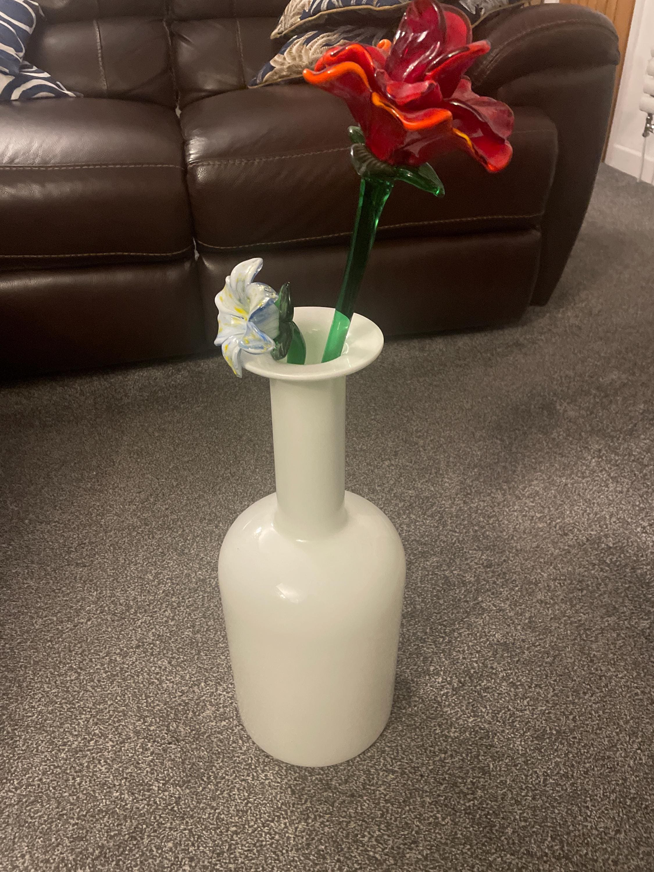 Each flower features a layered, free-form bloom with softly curled petals and a gently curved stem, showcasing good quality glasswork and vibrant colour. A timeless decorative accent that works beautifully in both modern and eclectic interiors.