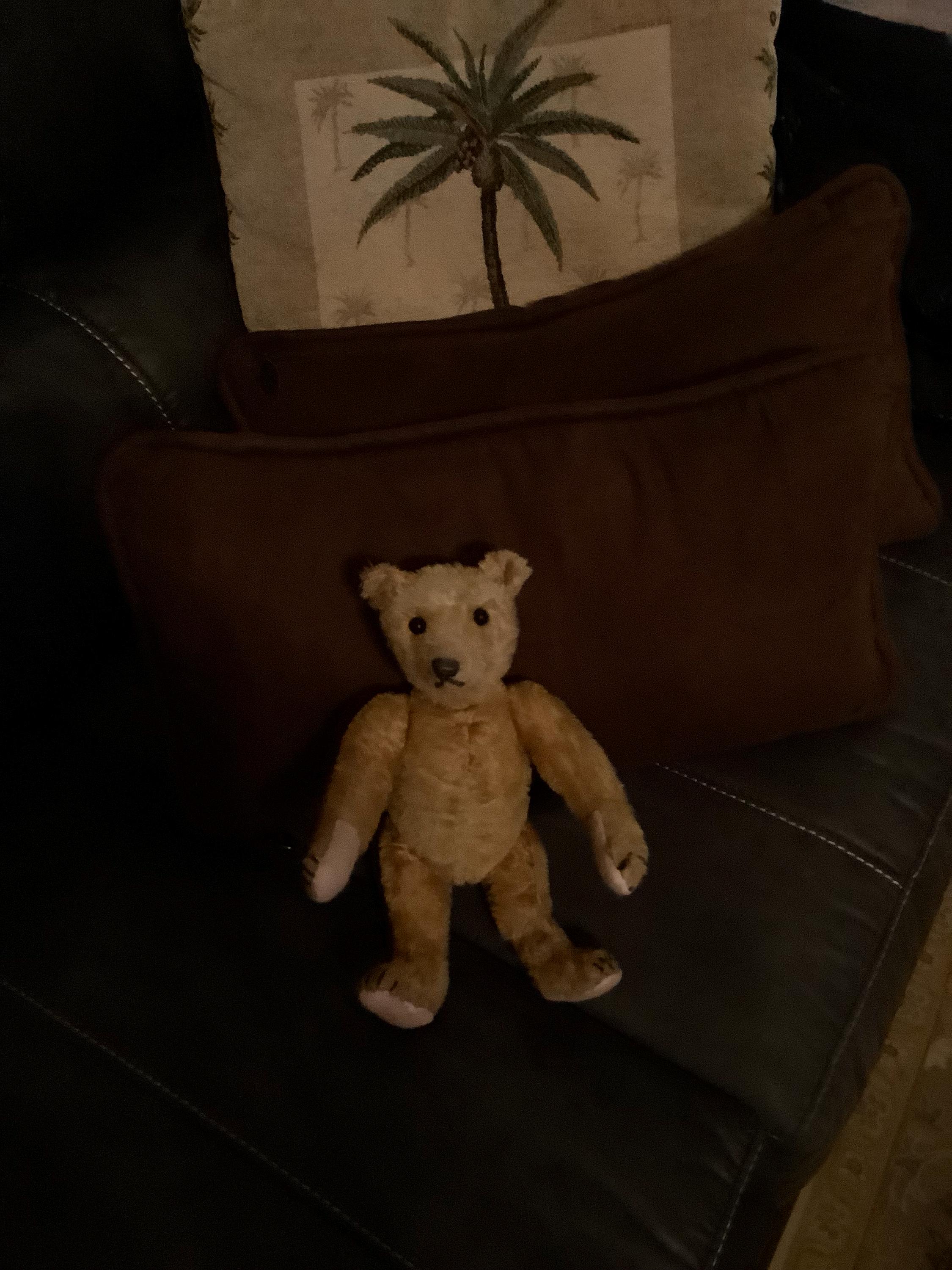 Condition: Excellent vintage condition with minimal wear. Felt pads are in remarkable original shape; mohair coverage is strong with just light age-related thinning and a slightly worn ear tip.