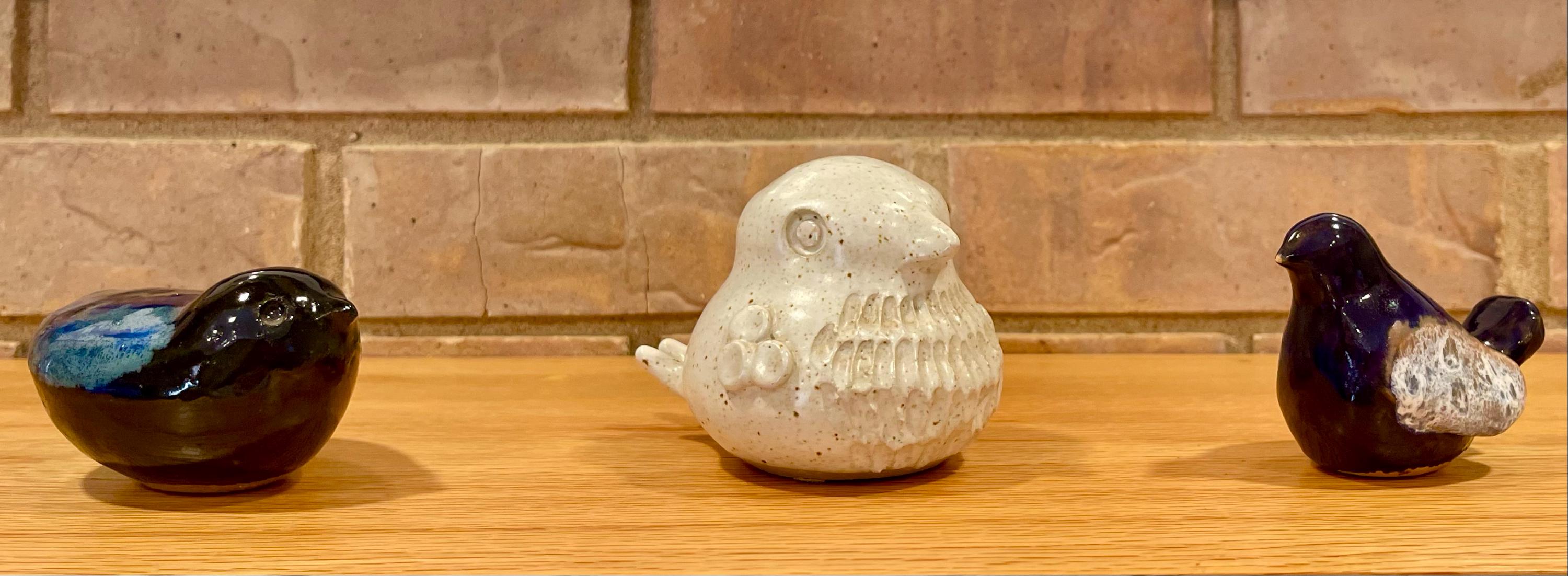 A charming vintage studio pottery bird, beautifully hand-sculpted and signed on the base. With a softly speckled glaze and expressive carved features, this stylised ceramic bird adds a warm, handmade touch to any shelf, desk, or windowsill. Its weight and craftsmanship reflect classic Scandinavian ceramic artistry.